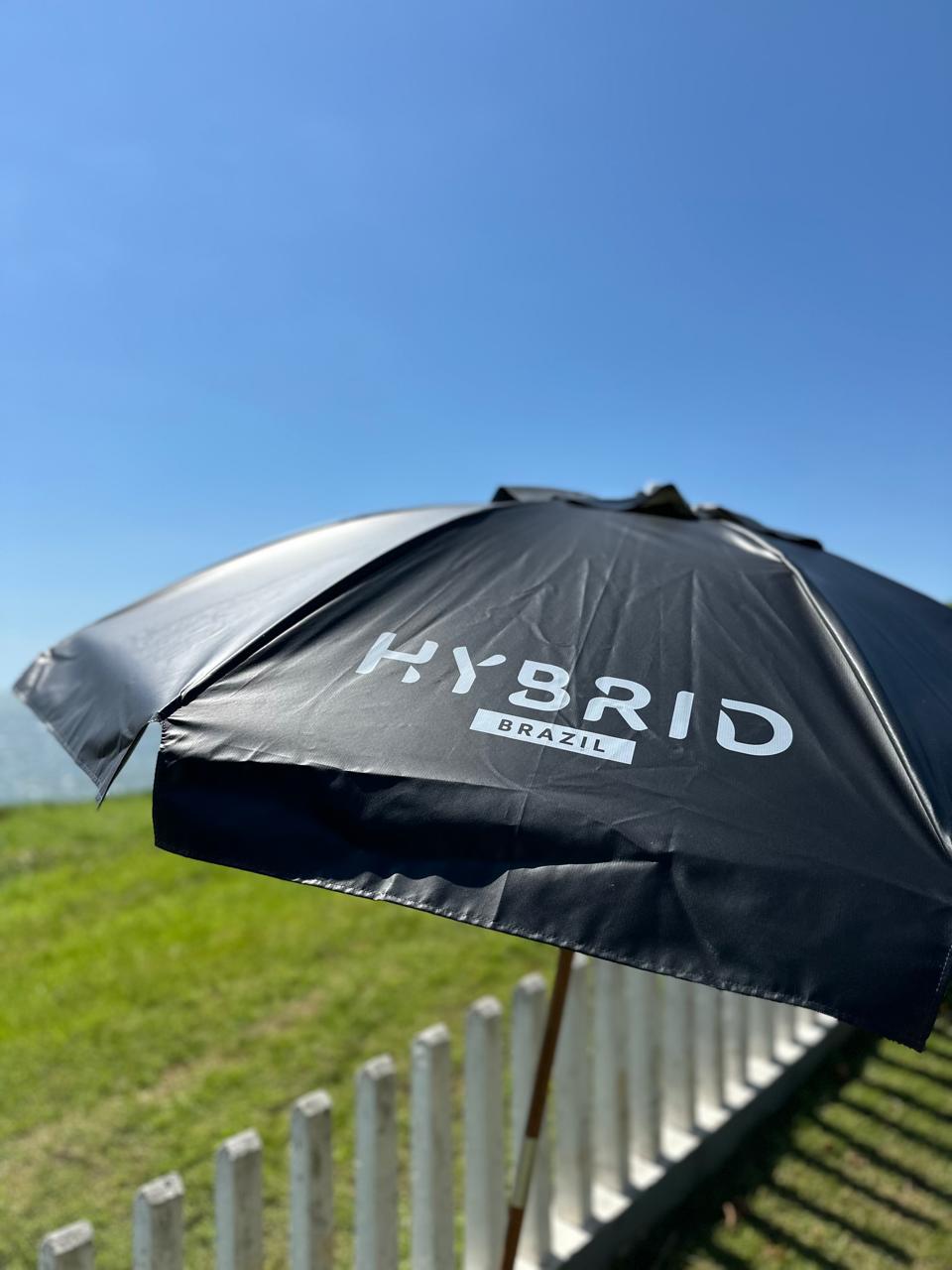 Guarda-sol Hybrid, cor preto, 2,0m, armação central em madeira de lei 28mm, cabo com luva para encaixe em alumínio, varetas em aço galvanizado ATC (alto teor de carbono), proteção solar FPS 100%.